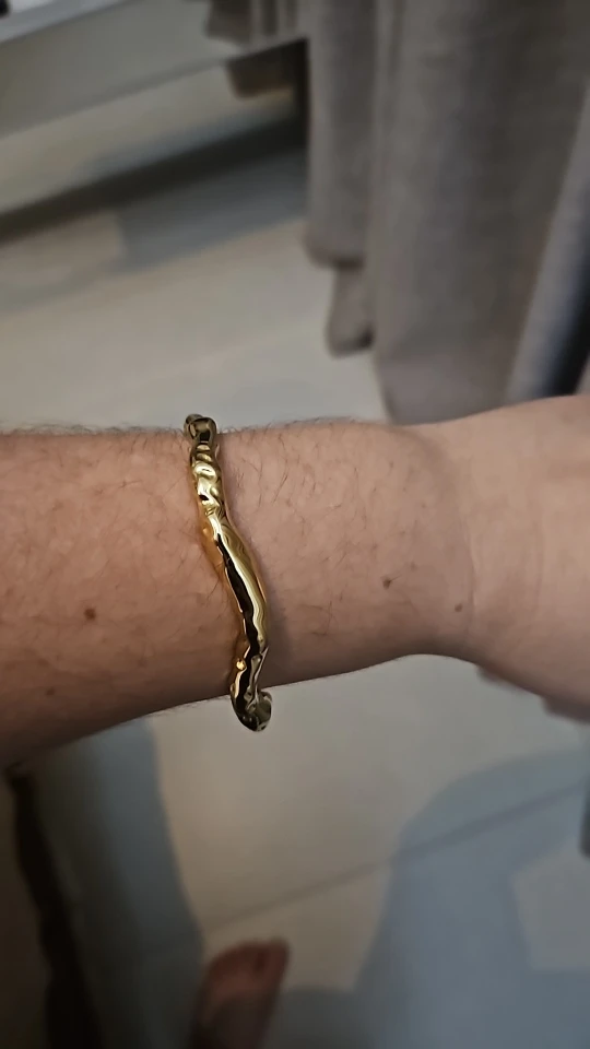 Meticulously crafted in polished stainless steel, this cuff features a textured, wave-inspired form that wraps gracefully around the wrist. The gold and silver tones radiate timeless sophistication, making it a versatile statement for any occasion.